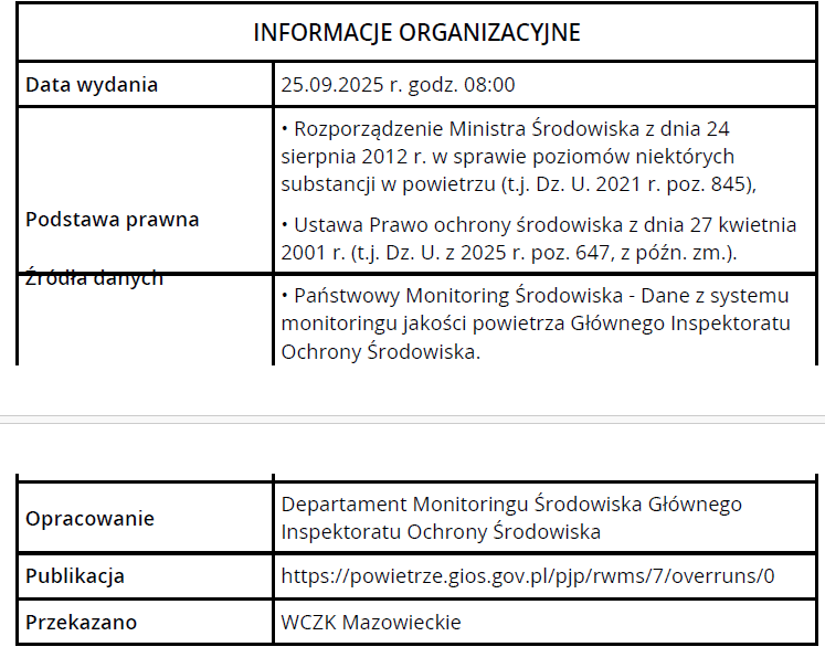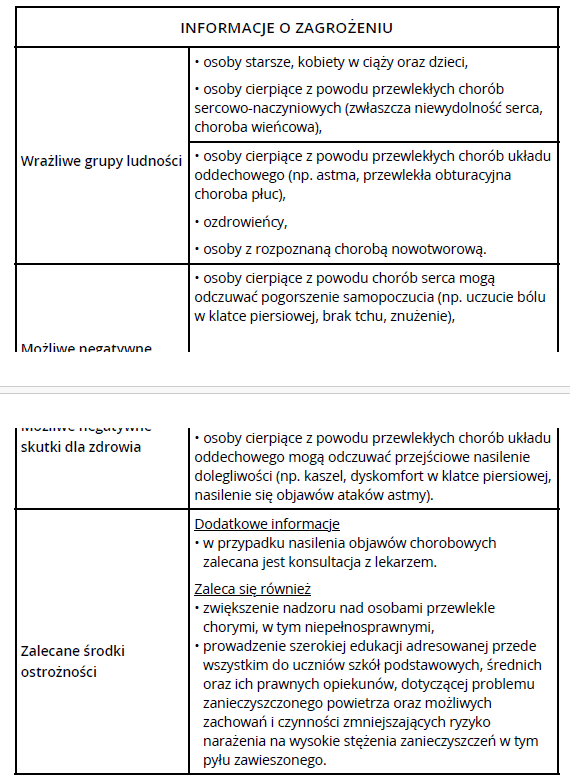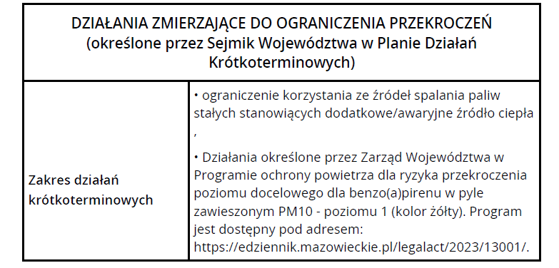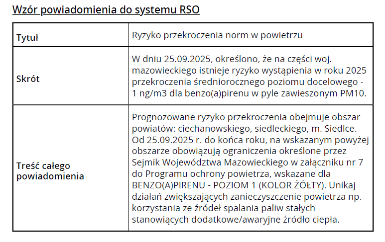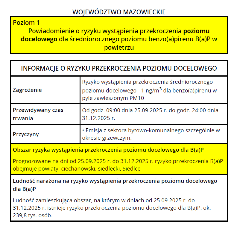 Powiadomienie o ryzyku wystąpienia przekroczenia poziomu docelowego dla średniorocznego poziomu benzo(a)pirenu B(a)P w powietrzu