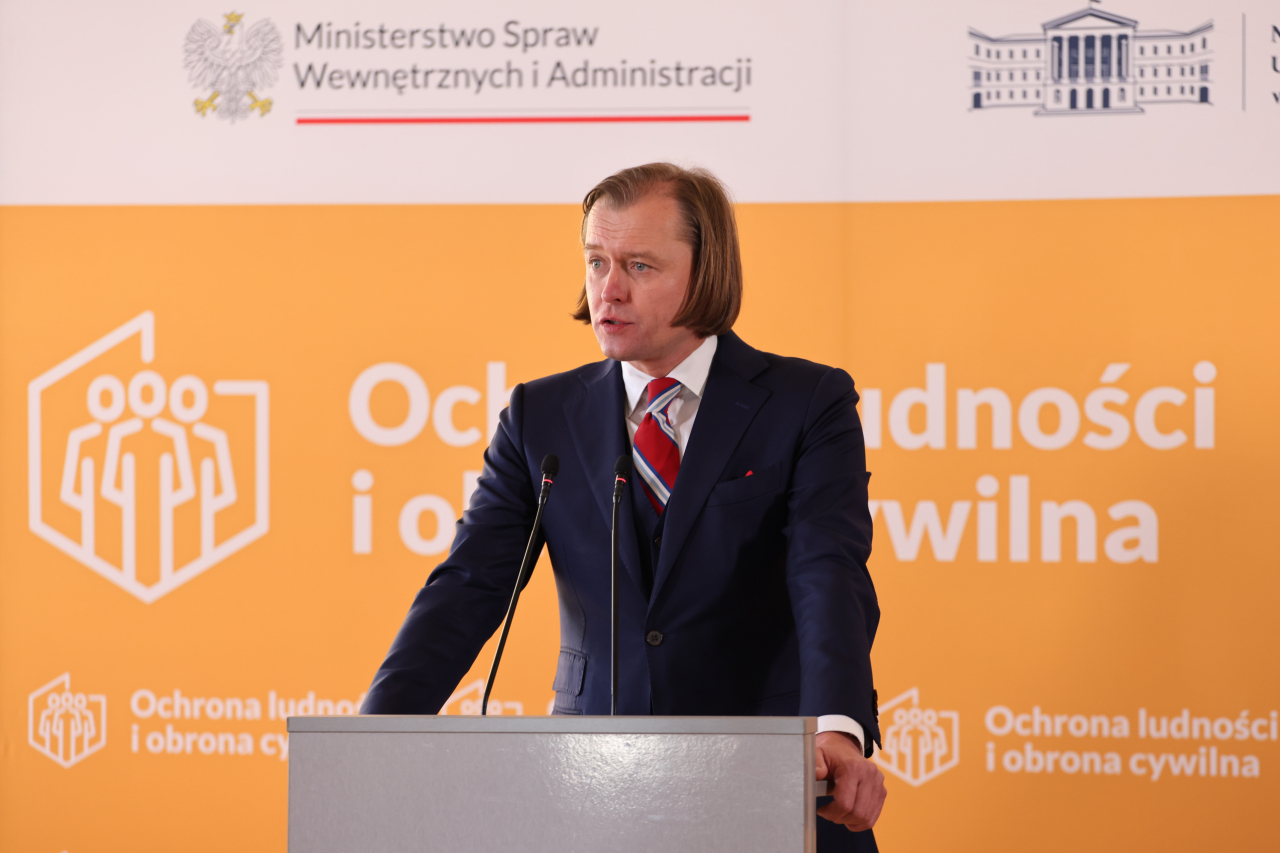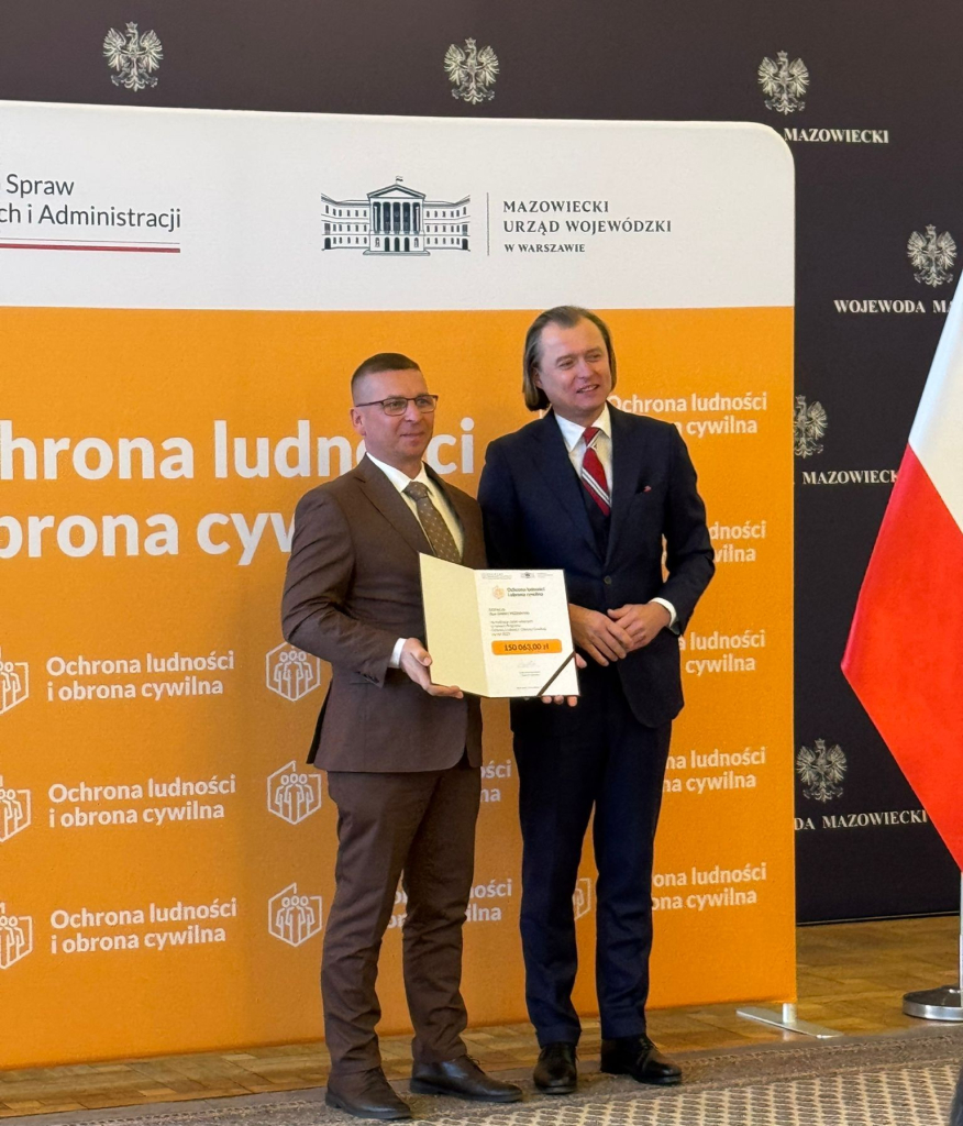 W dniu 24 września 2025 roku Wójt Gminy Przesmyki Pan Marek Zalewski wziął udział w uroczystości z okazji otrzymania dofinansowania na realizację zadań w ramach Programu Ochrony Ludności i Obrony Cywilnej: