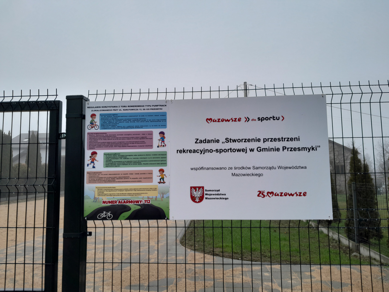 Miło nam poinformować, że w ramach zadania „Stworzenie przestrzeni rekreacyjno-sportowej w Gminie Przesmyki” powstał pierwszy w naszej gminie tor typu pumptruck. Jest to miejsce do jazdy przede wszystkim rowerami i rolkami. Docelowo chcemy tam utworzyć kolejne atrakcje, aby powstał obiekt nie tylko do uprawiania sportu, ale też do rekreacji. Projekt został dofinansowany przez Urząd Marszałkowski Województwa Mazowieckiego w wysokości 226 730,00 zł w ramach programu „Mazowsze dla sportu 2024”, pozostałe środki pochodziły z budżetu Gminy Przesmyki.
