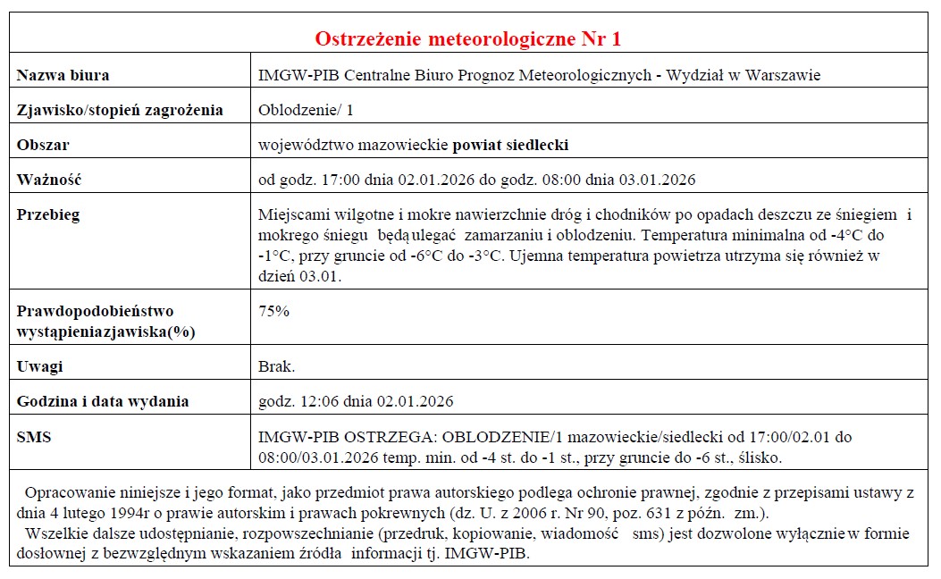 OSTRZEŻENIE METEOROLOGICZNE