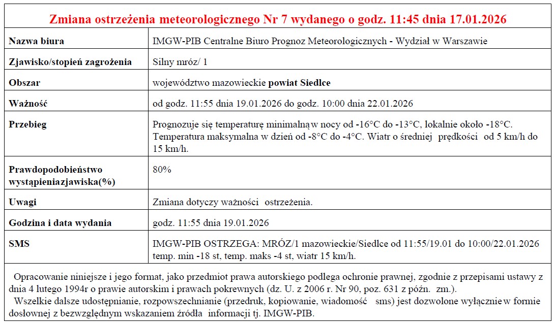 OSTRZEŻENIE METEOROLOGICZNE