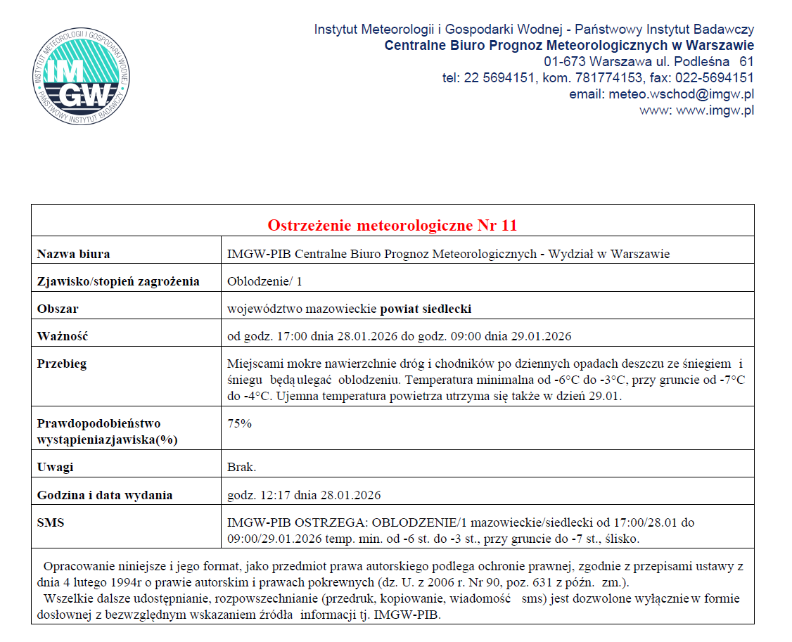 OSTRZEŻENIE METEOROLOGICZNE