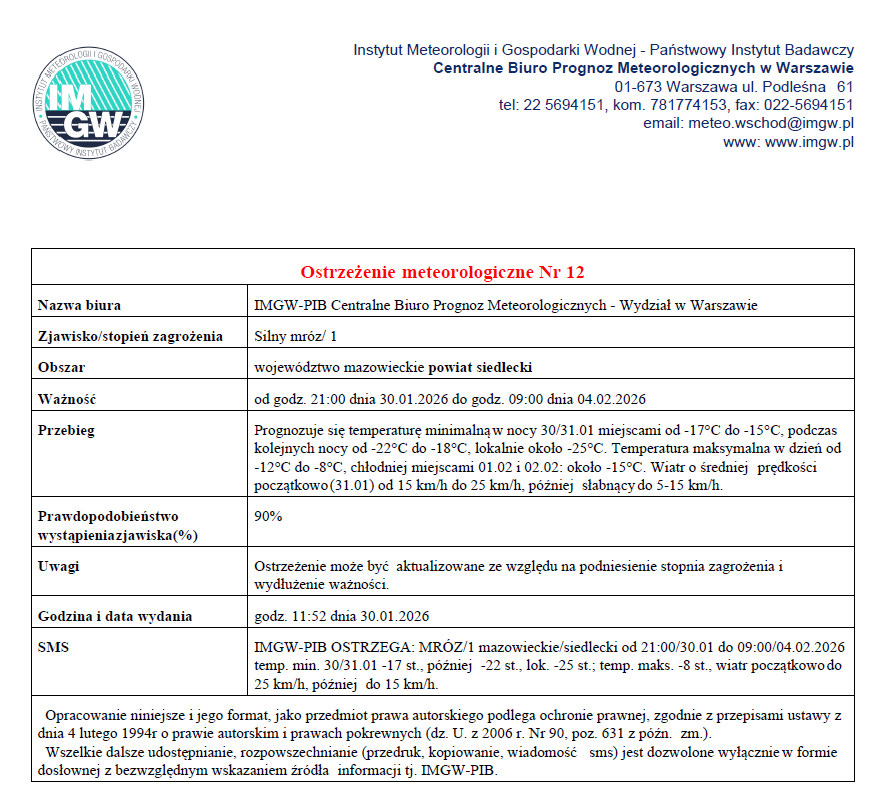 OSTRZEŻENIE METEOROLOGICZNE