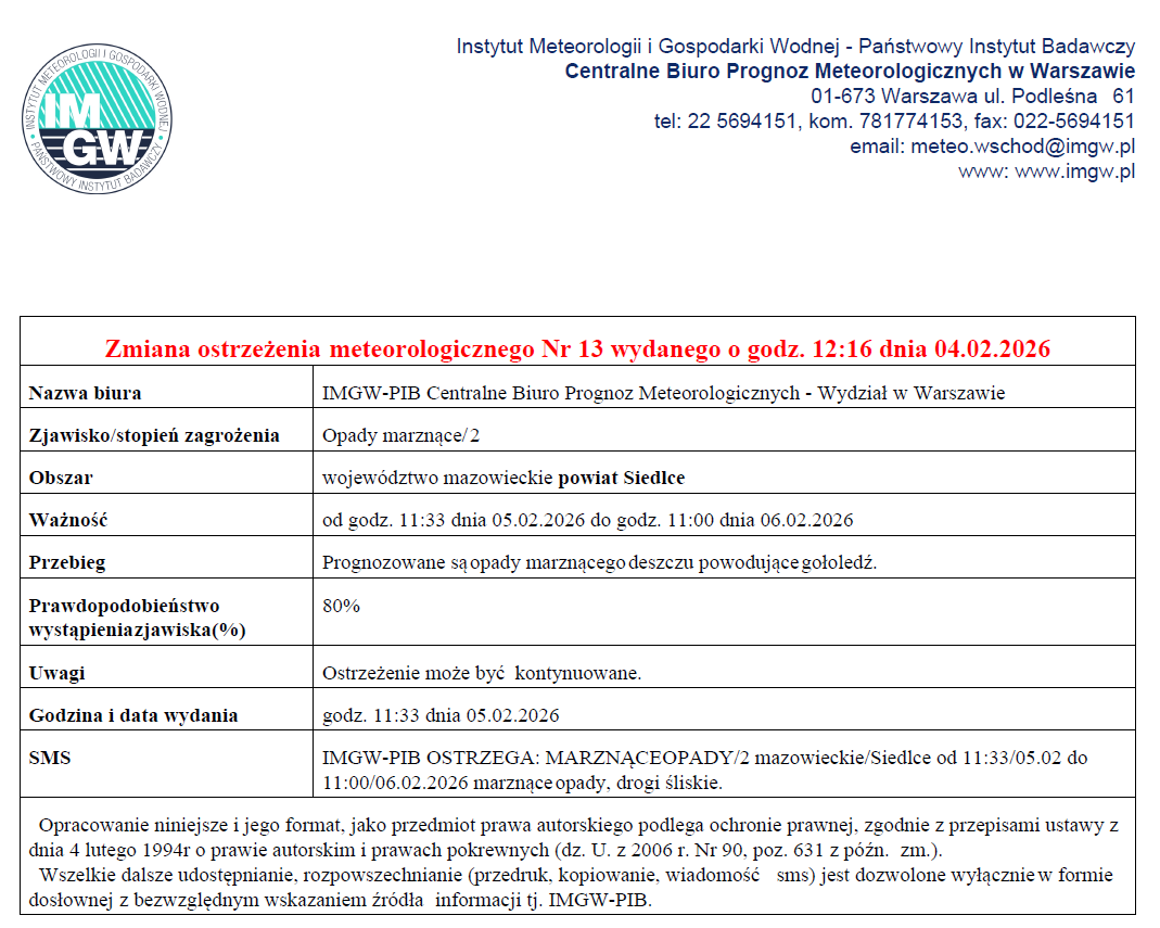 OSTRZEŻENIE METEOROLOGICZNE