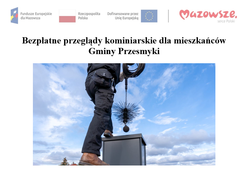 Wójt Gminy Przesmyki ogłasza nabór wniosków na wykonanie przeglądów kominiarskich budynków mieszkalnych położonych na terenie gminy Przesmyki realizowanych w ramach projektu „Mazowsze bez smogu”.